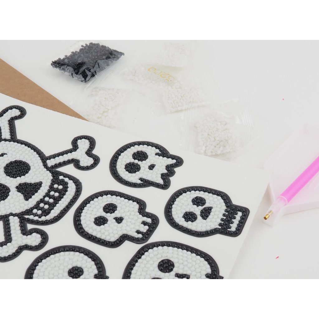 Le kit contient tout ce dont vous avez besoin : autocollants, diamants et outils (plateau, cire, stylo à diamants).