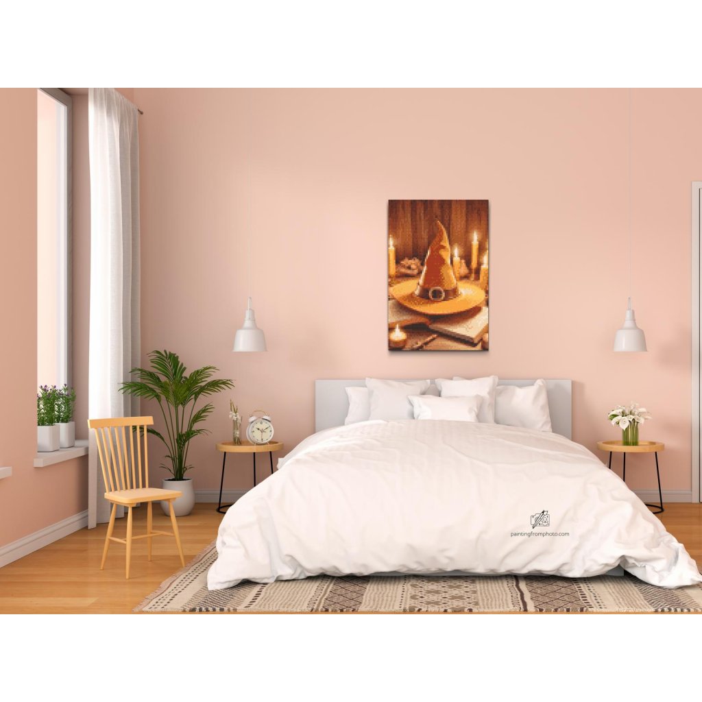 Toile enduite de colle - Votre toile est déjà recouverte d'une couche de colle, avec un film protecteur à retirer progressivement au fur et à mesure que vous appliquez les diamants. L'ensemble du processus est assez propre et facile. Envisagez d'acheter le cadre en bois, sinon votre kit comprend tout ce dont vous avez besoin.