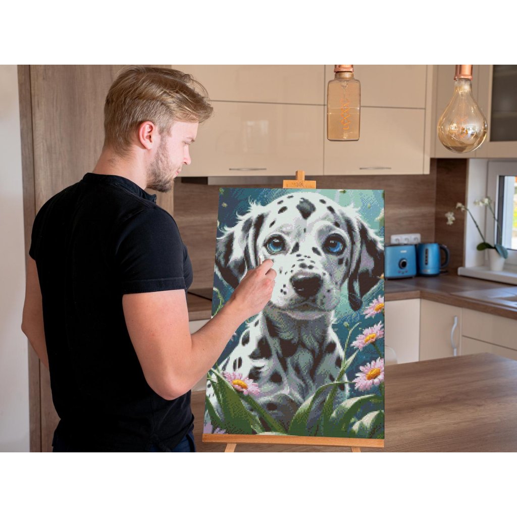 Le processus est simple : votre kit comprend une toile à base de colle et un gabarit, sur lesquels vous appliquerez des diamants marqués en les faisant correspondre aux symboles correspondants sur la toile. Vous trouverez le stylo à diamants très pratique, car il peut contenir jusqu'à trois diamants à la fois ; et le tack adhésif, semblable à une palette de peinture, vous aidera à ne pas perdre vos précieux diamants !