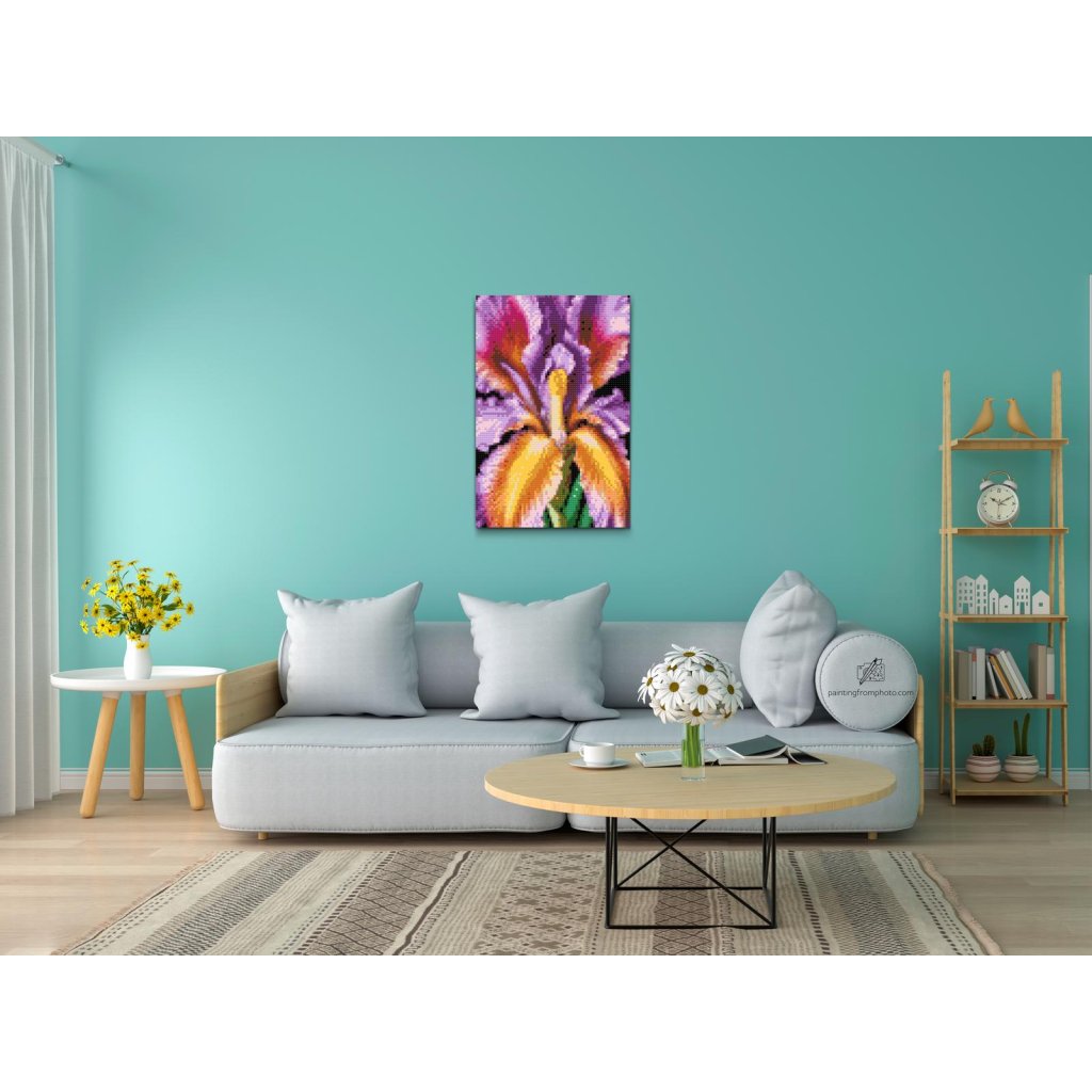 Toile enduite de colle - Votre toile est déjà recouverte d'une couche de colle, avec un film protecteur à retirer progressivement au fur et à mesure que vous appliquez les diamants. L'ensemble du processus est assez propre et facile. Envisagez d'acheter le cadre en bois, sinon votre kit comprend tout ce dont vous avez besoin.