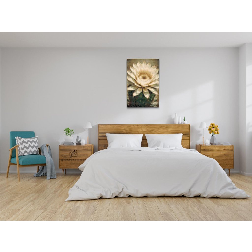 Toile enduite de colle - Votre toile est déjà recouverte d'une couche de colle, avec un film protecteur à retirer progressivement au fur et à mesure que vous appliquez les diamants. L'ensemble du processus est assez propre et facile. Envisagez d'acheter le cadre en bois, sinon votre kit comprend tout ce dont vous avez besoin.