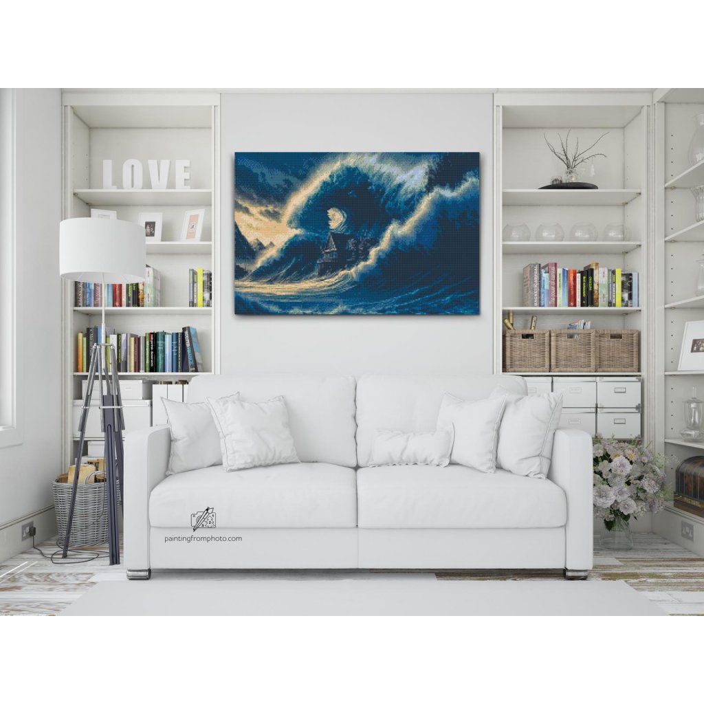 Toile enduite de colle - Votre toile est déjà recouverte d'une couche de colle, avec un film protecteur à retirer progressivement au fur et à mesure que vous appliquez les diamants. L'ensemble du processus est assez propre et facile. Envisagez d'acheter le cadre en bois, sinon votre kit comprend tout ce dont vous avez besoin.