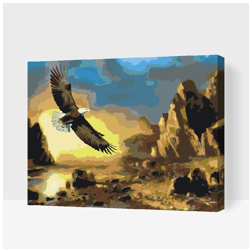 Peinture par numéros - Aigle tournoyant au-dessus des montagnes