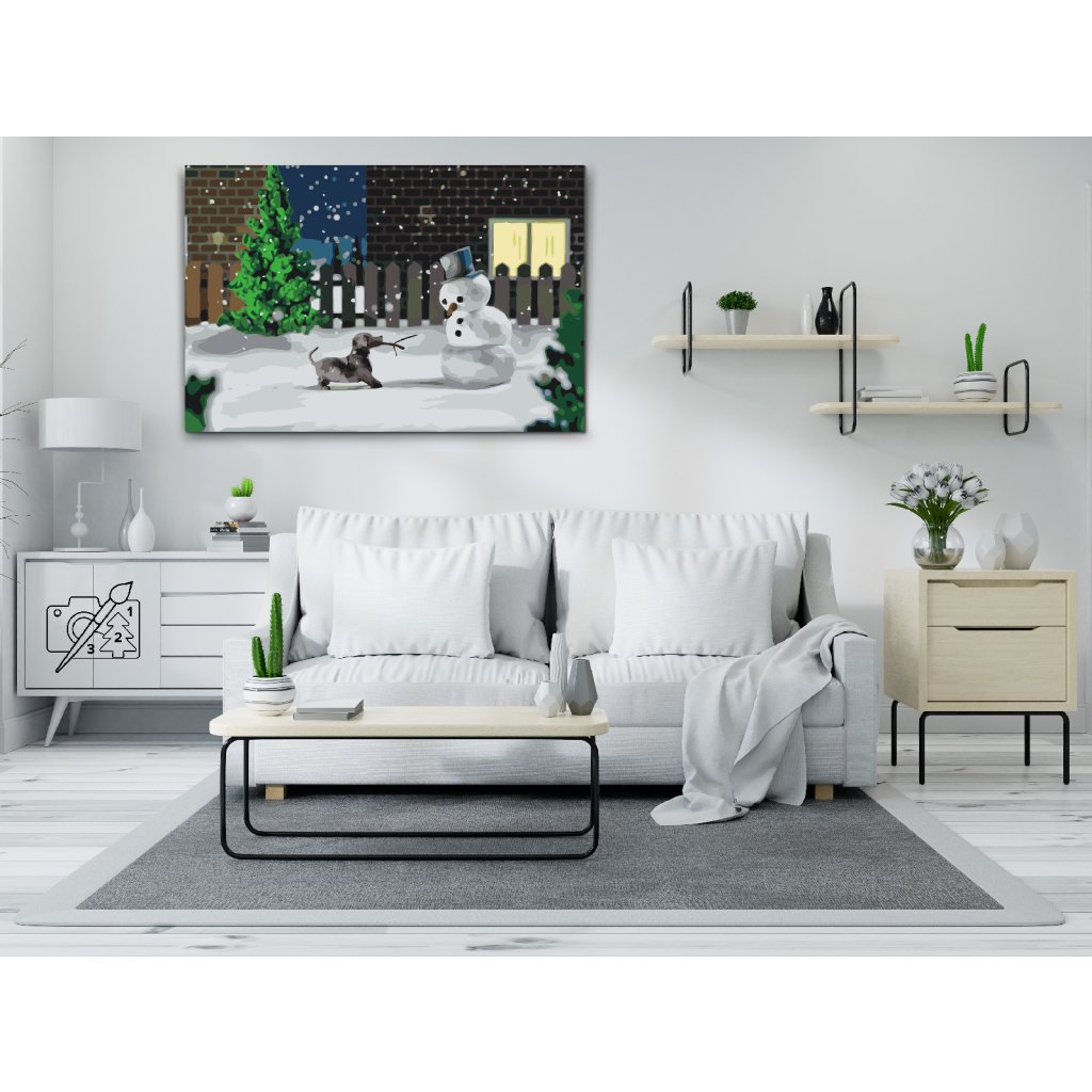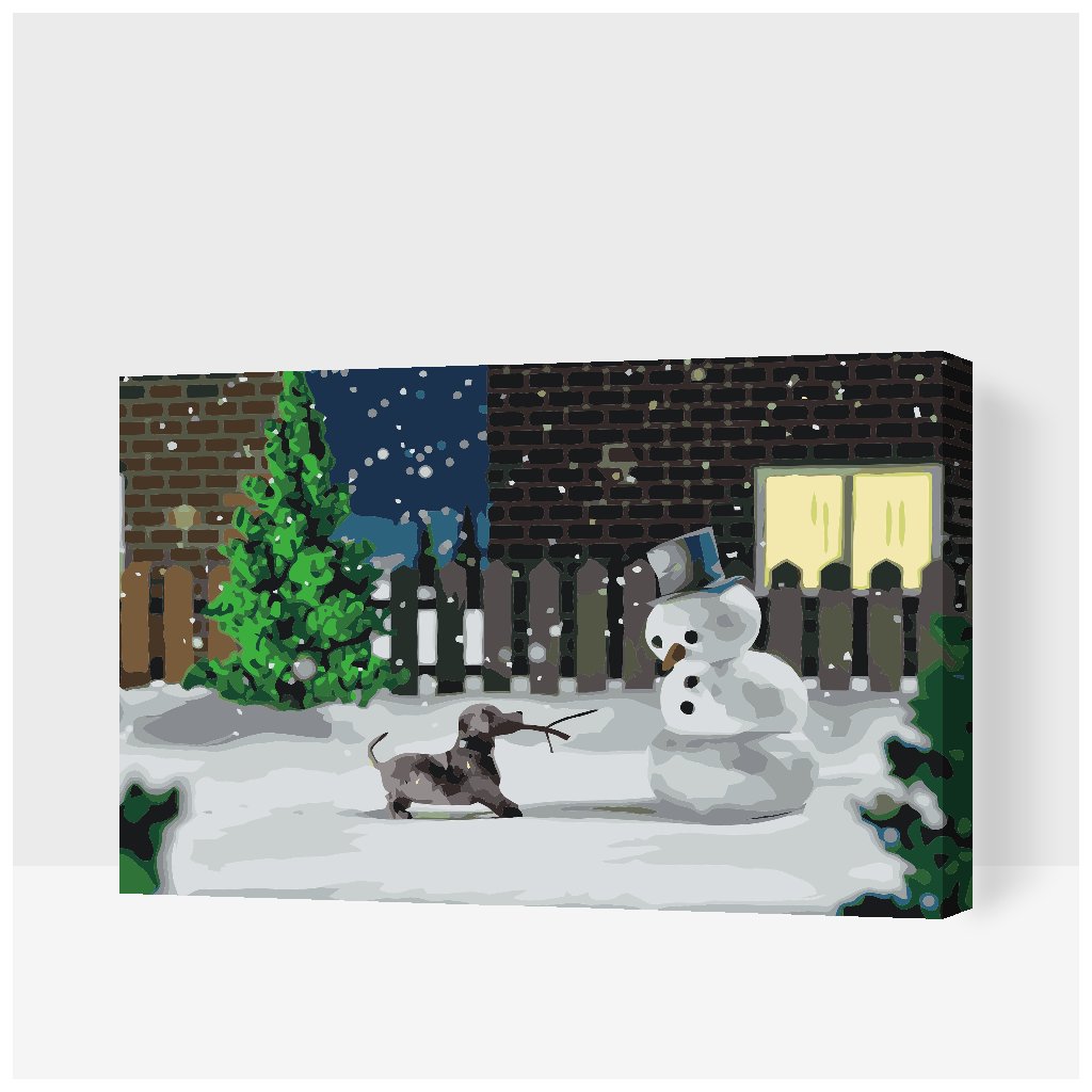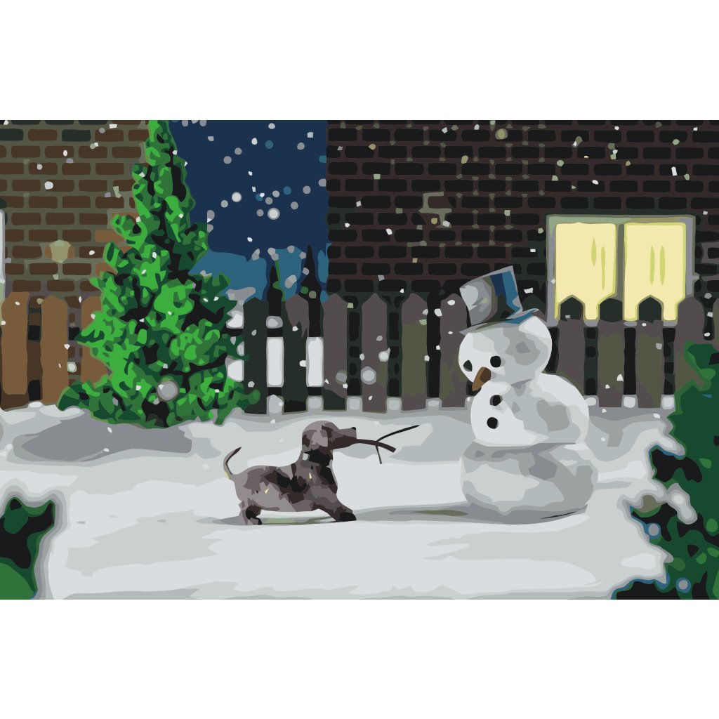 Peinture par numéros - Bonhomme de neige et chien