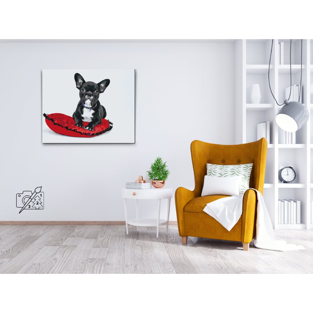 Peinture par numéros - Bouledogue noir sur un oreiller