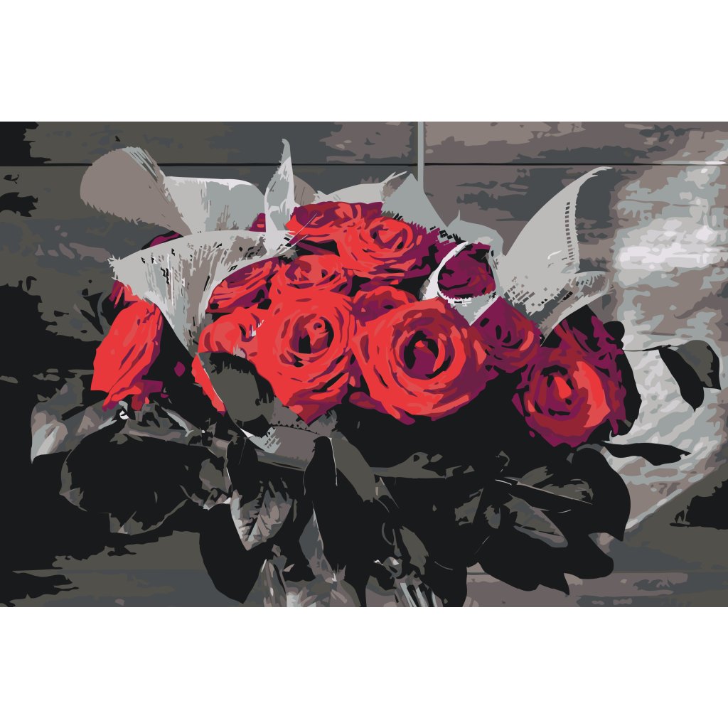 Peinture par numéros - Bouquet de roses rouges