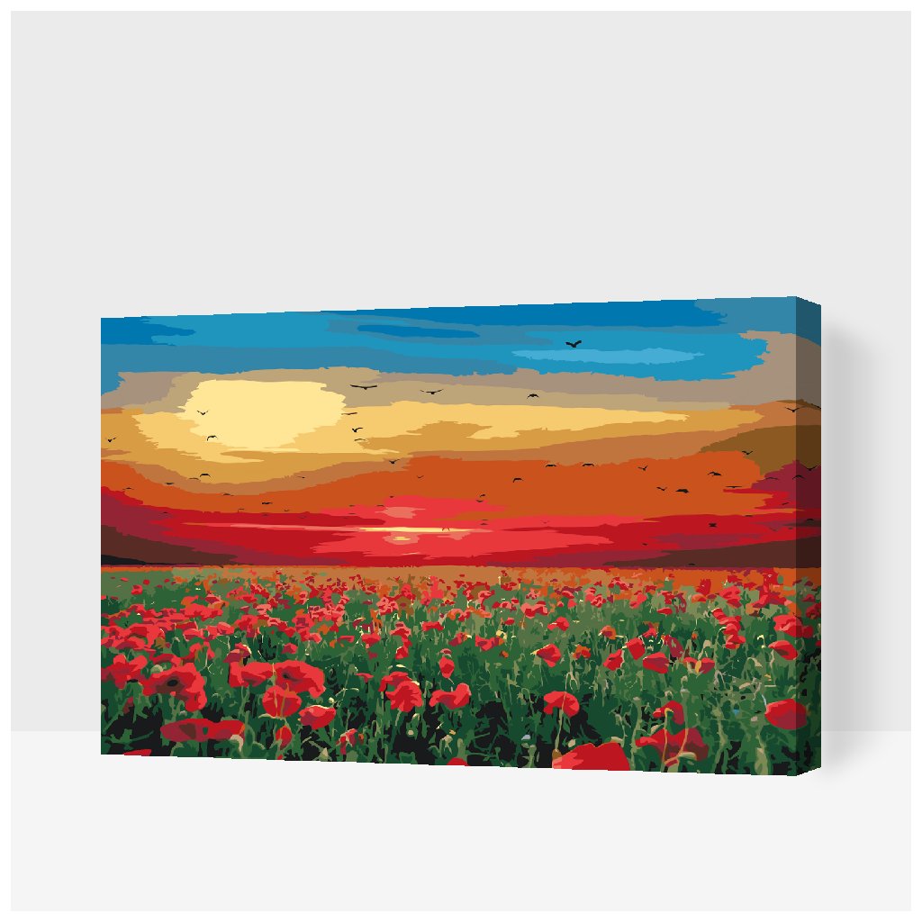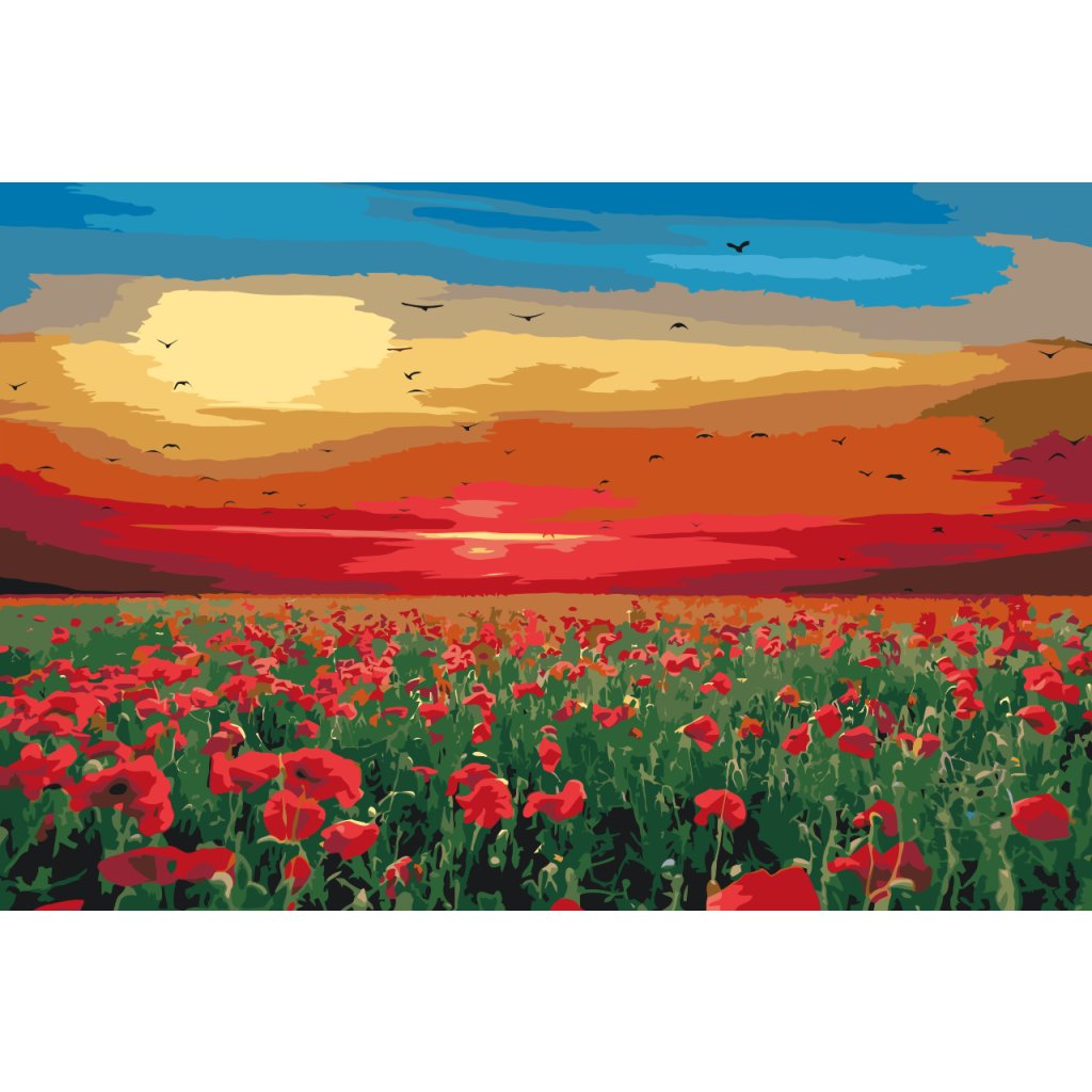 Peinture par numéros - Champ de coquelicots au coucher du soleil