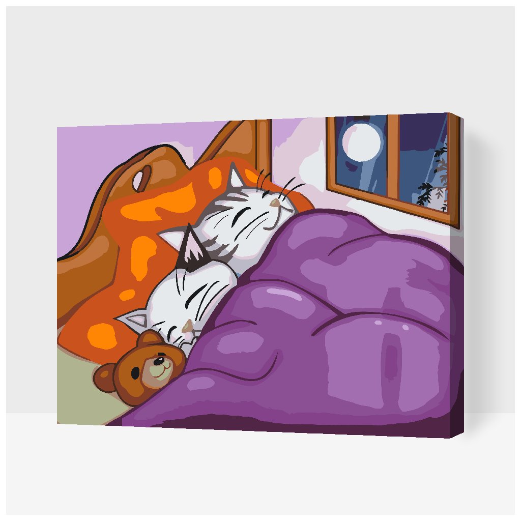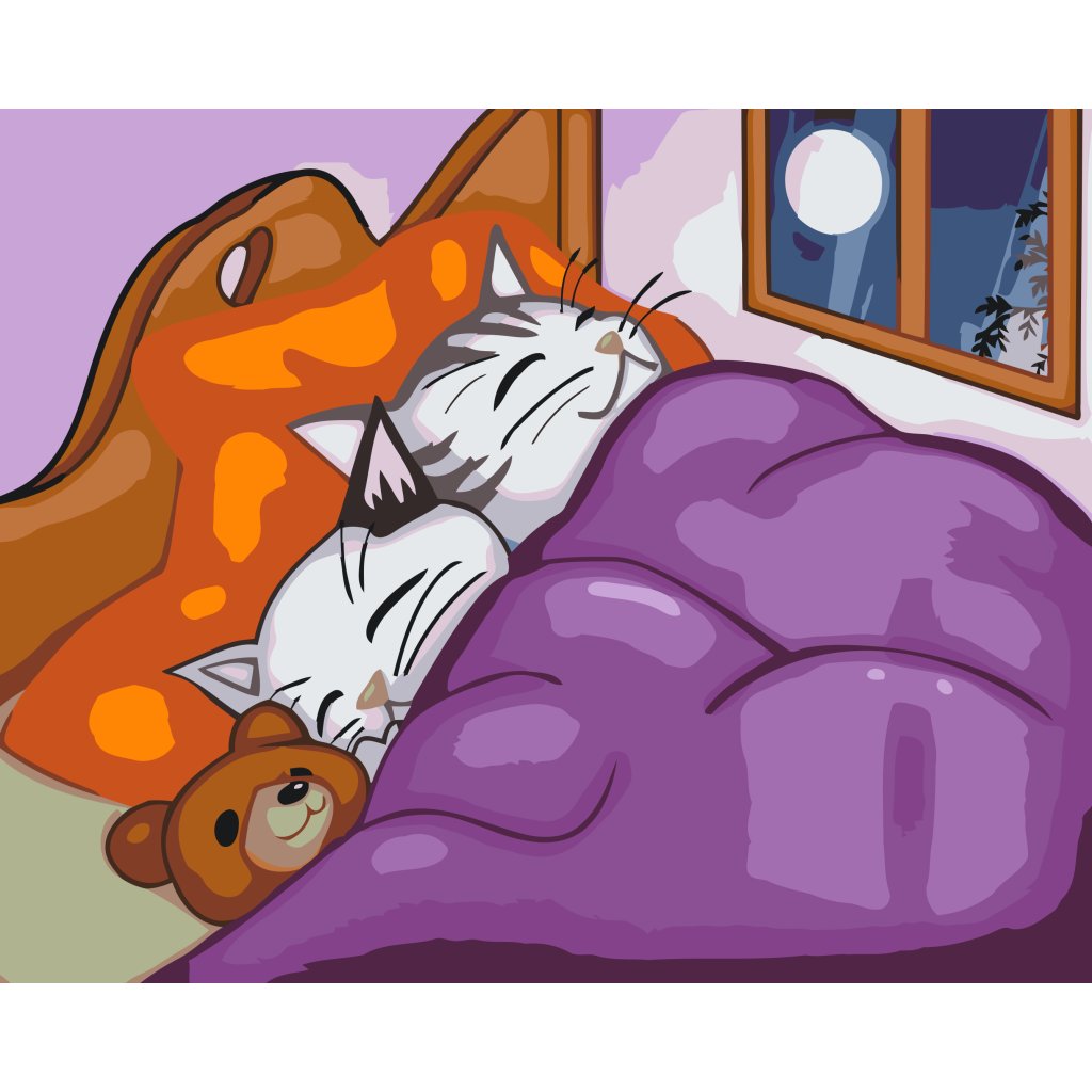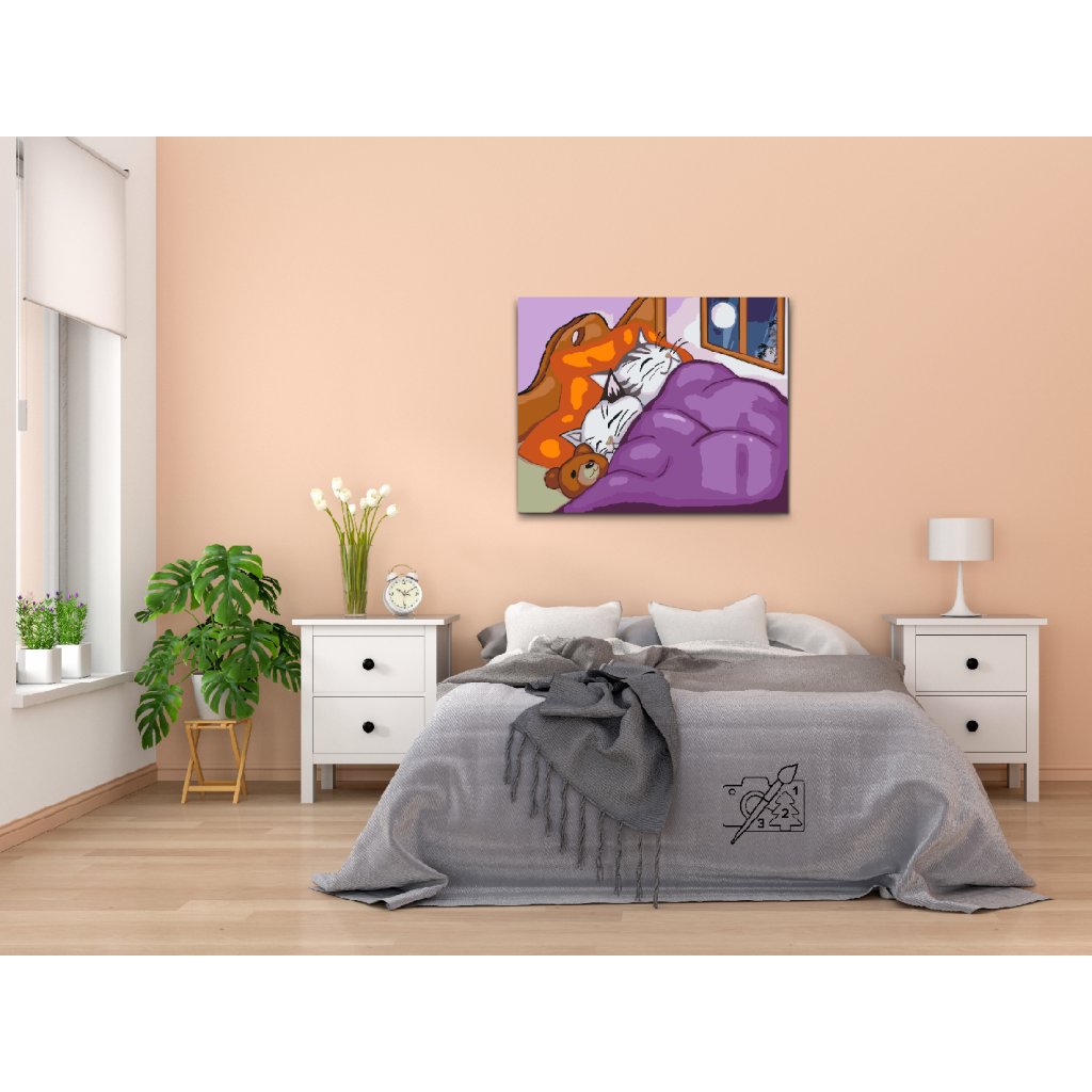 Peinture par numéros - Chatons et ours en peluche dans un lit