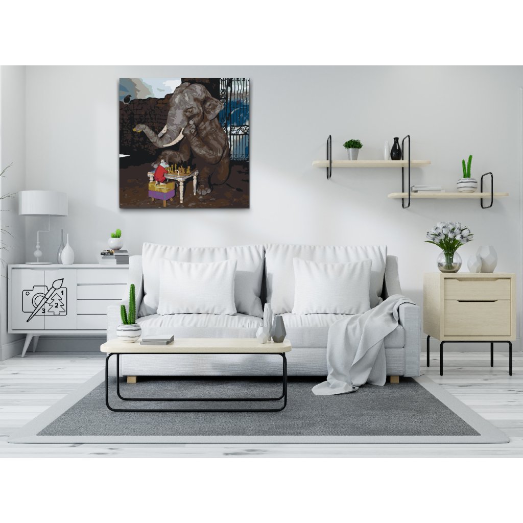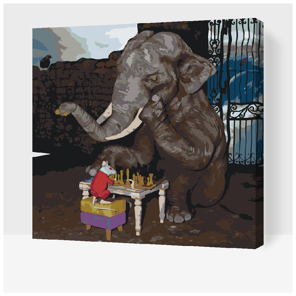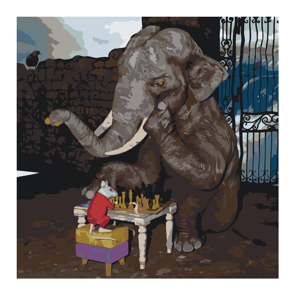 Peinture par numéros - Éléphant et souris jouant aux échecs