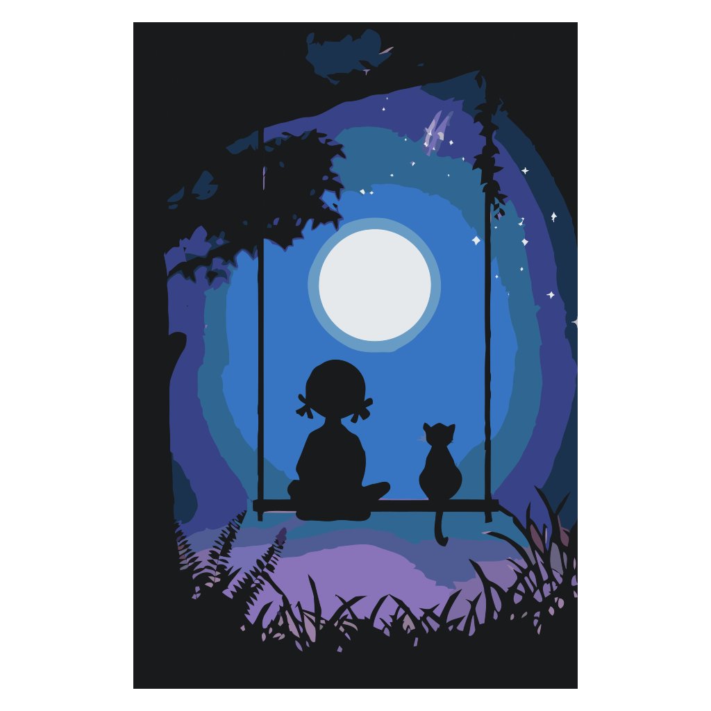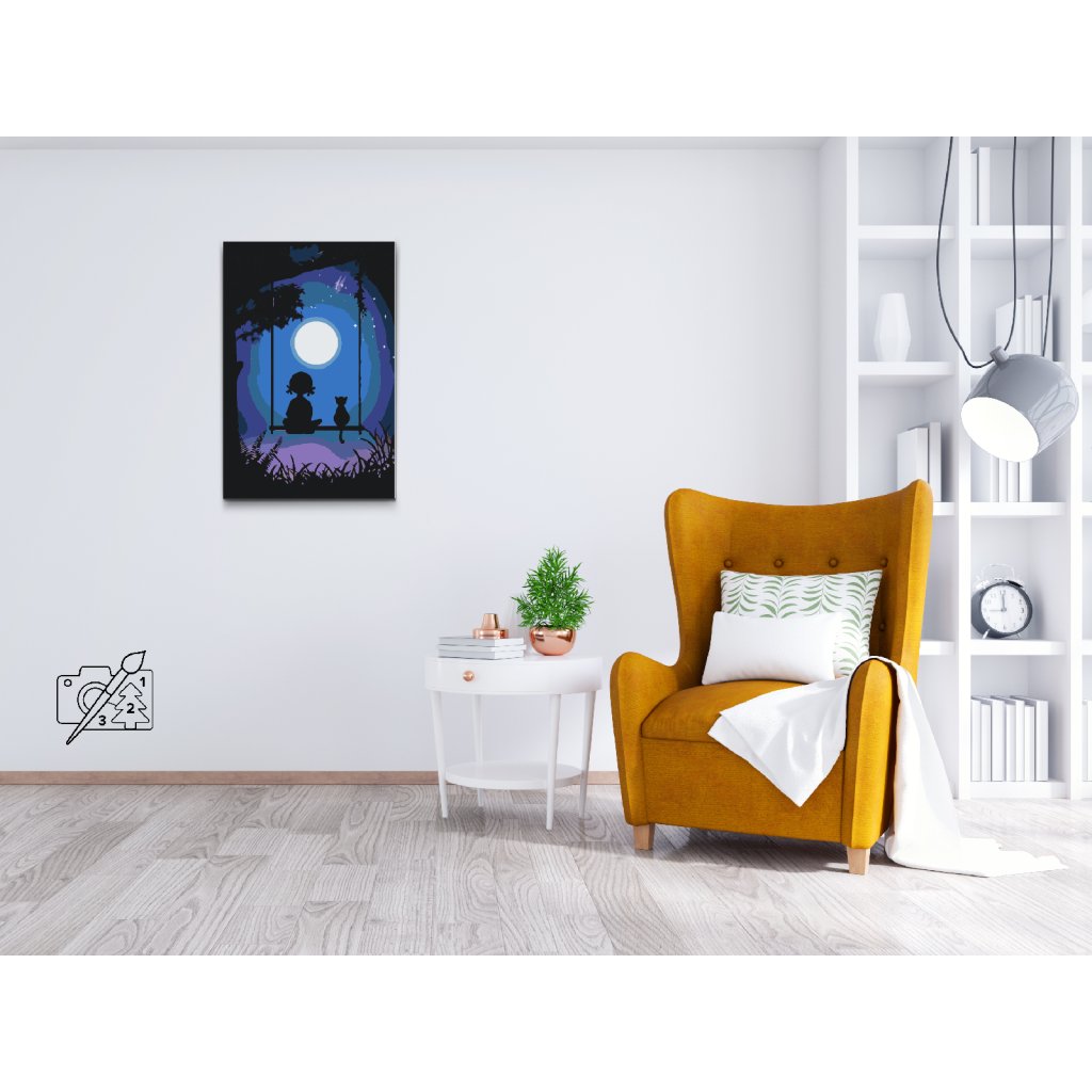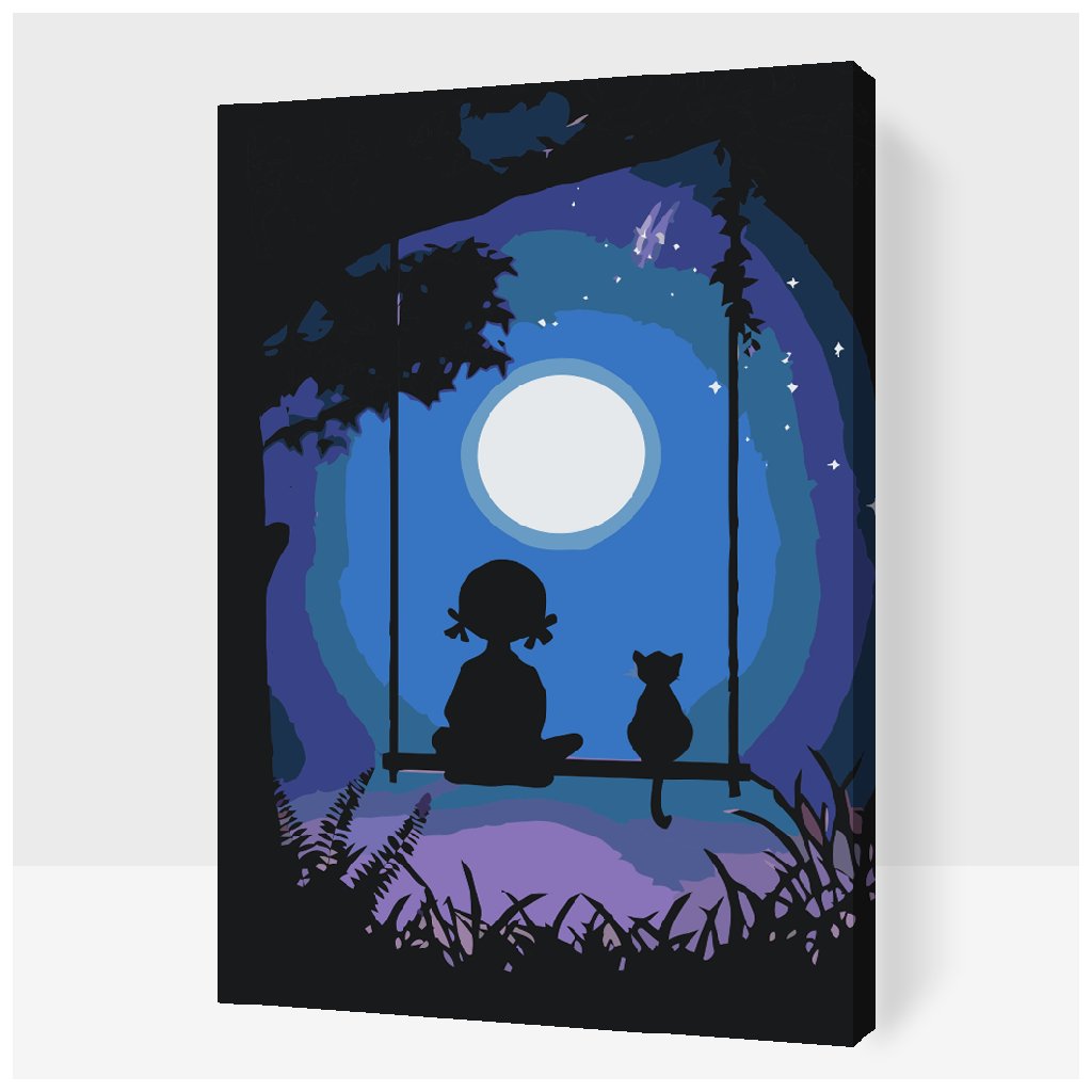 Peinture par numéros - Fille avec un chat sur la balançoire