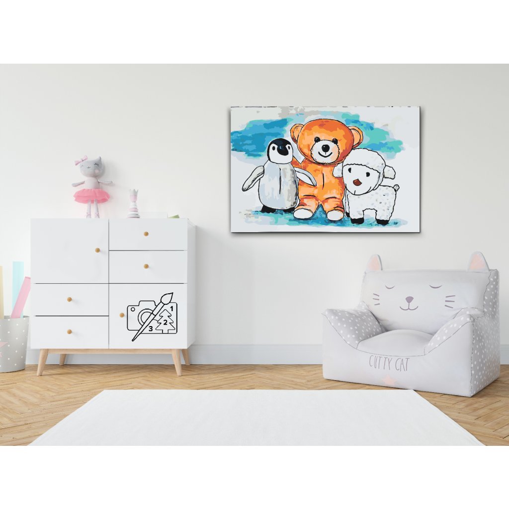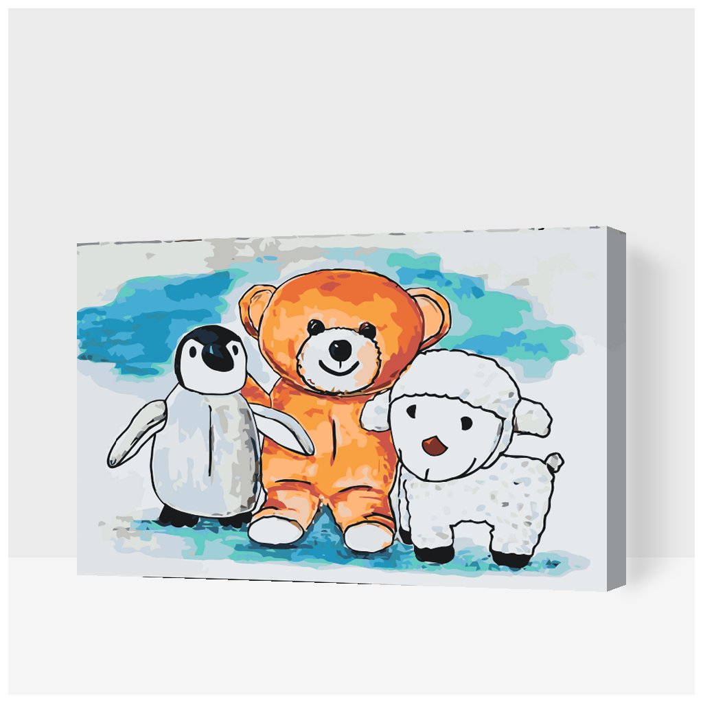 Peinture par numéros - Pingouin, ours en peluche et mouton