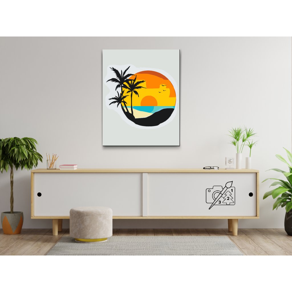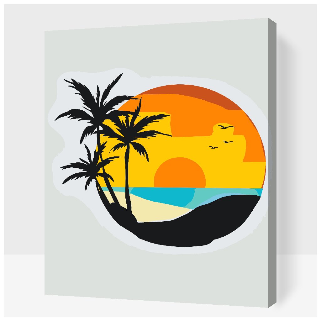 Peinture par numéros - Plage, palmiers, coucher de soleil