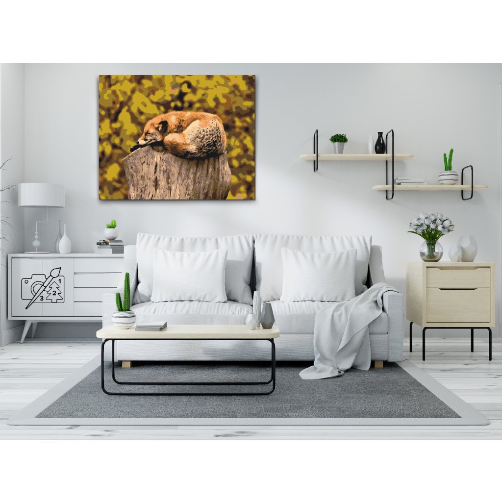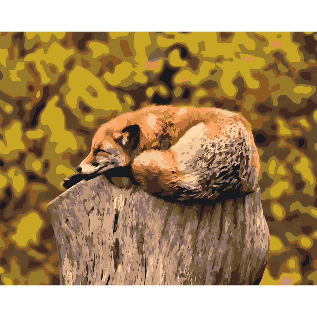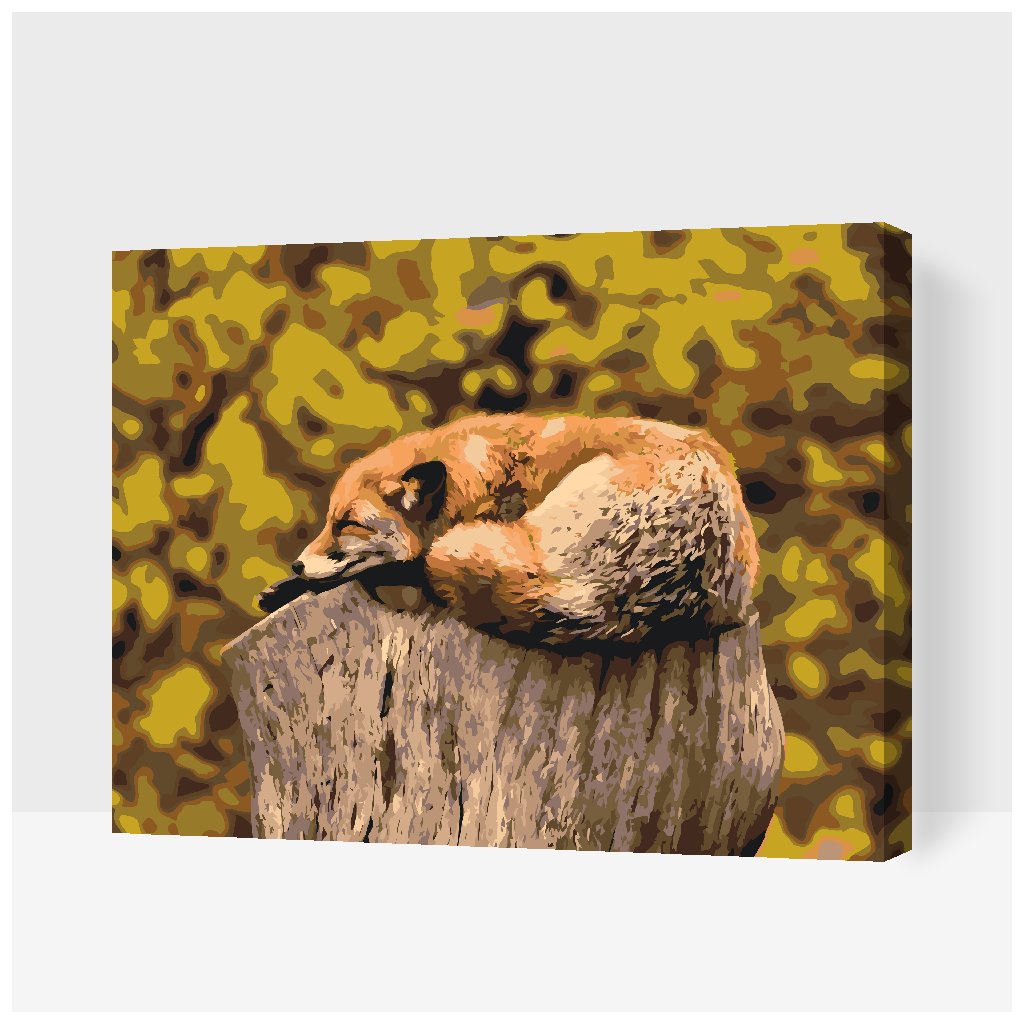 Peinture par numéros - Renard se reposant sur un tronc d'arbre