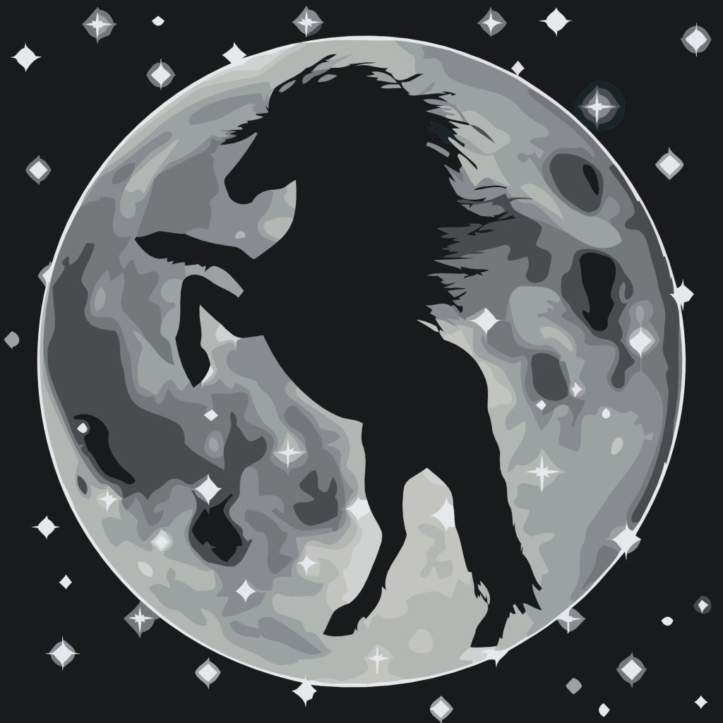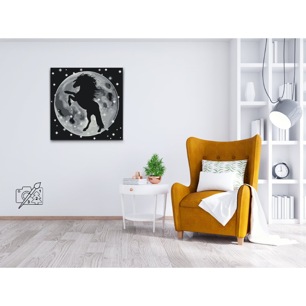 Peinture par numéros - Silhouette d'un cheval sur la lune