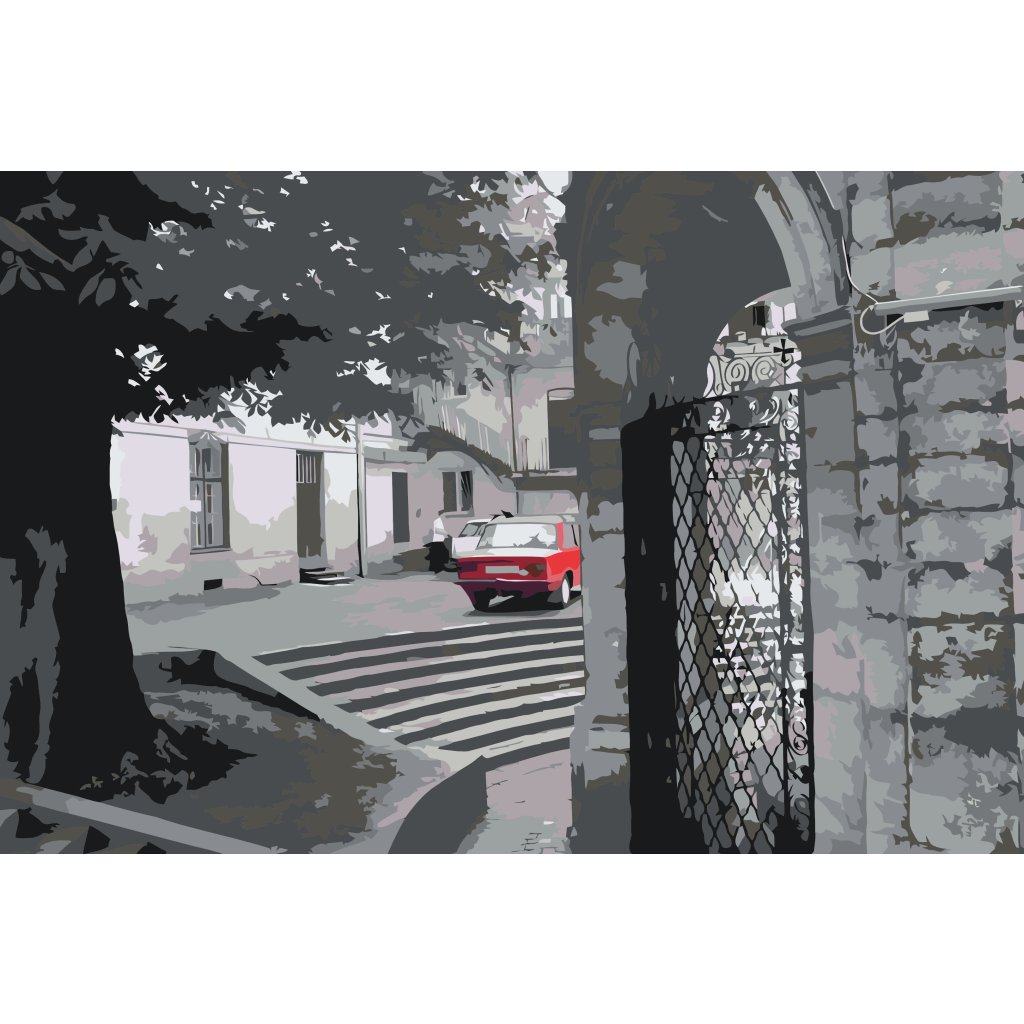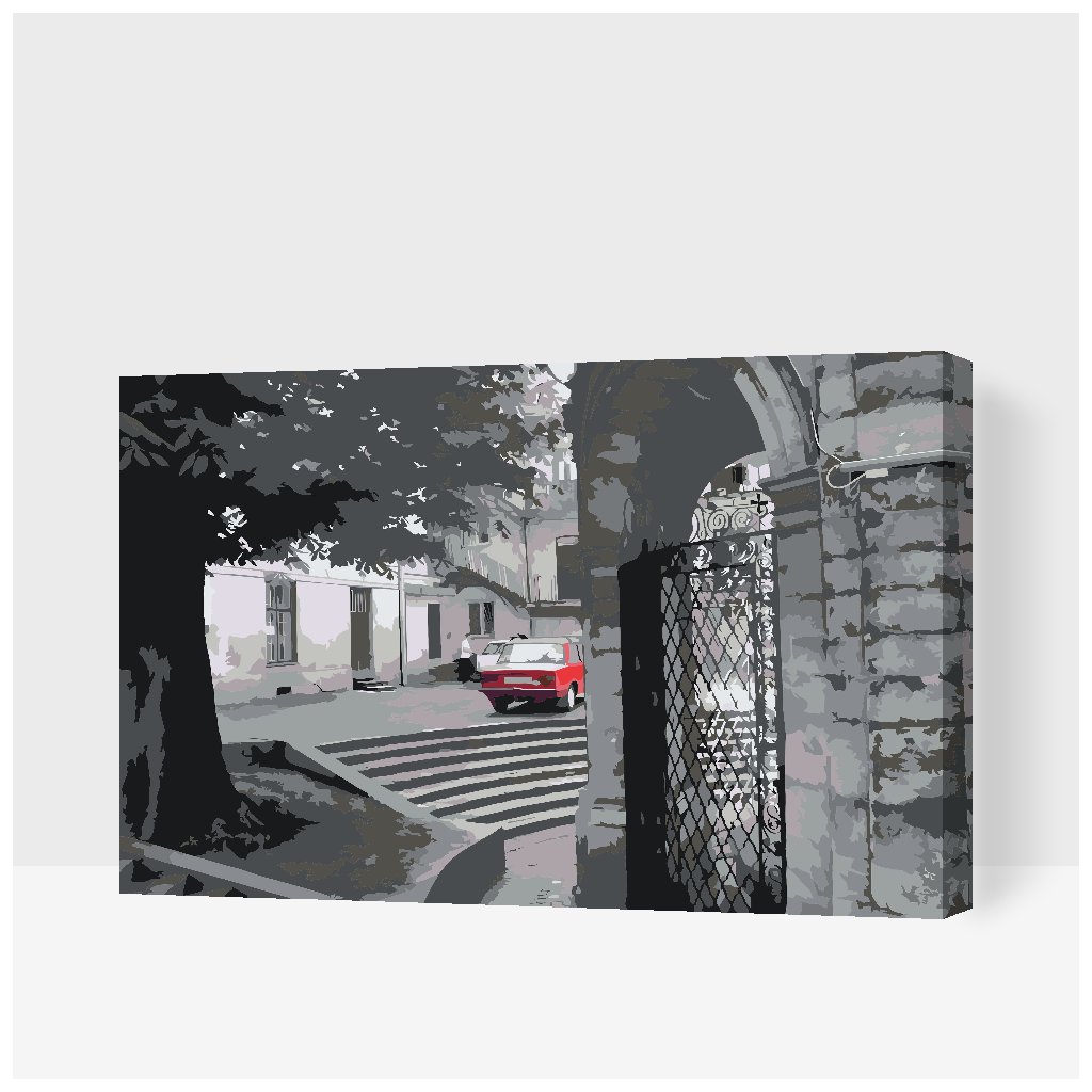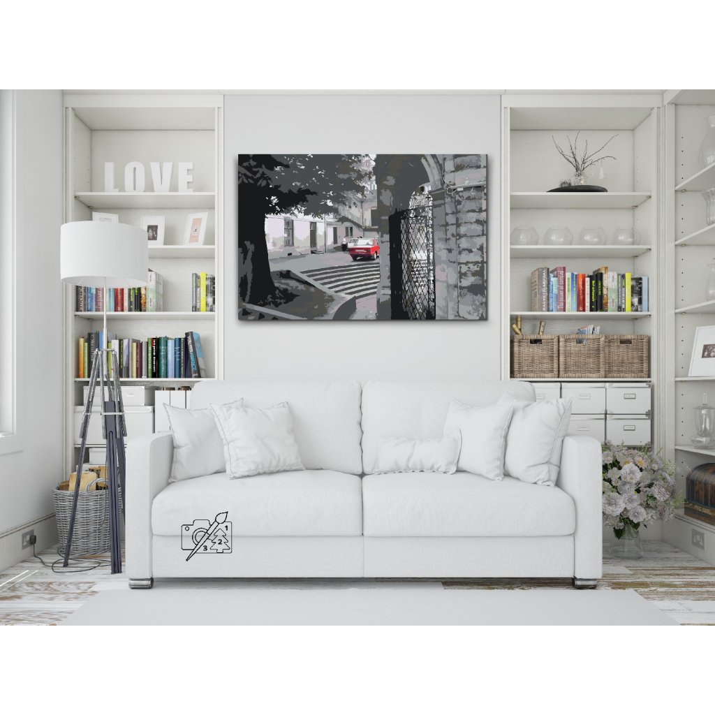 Peinture par numéros - Voiture rouge dans une ruelle grise